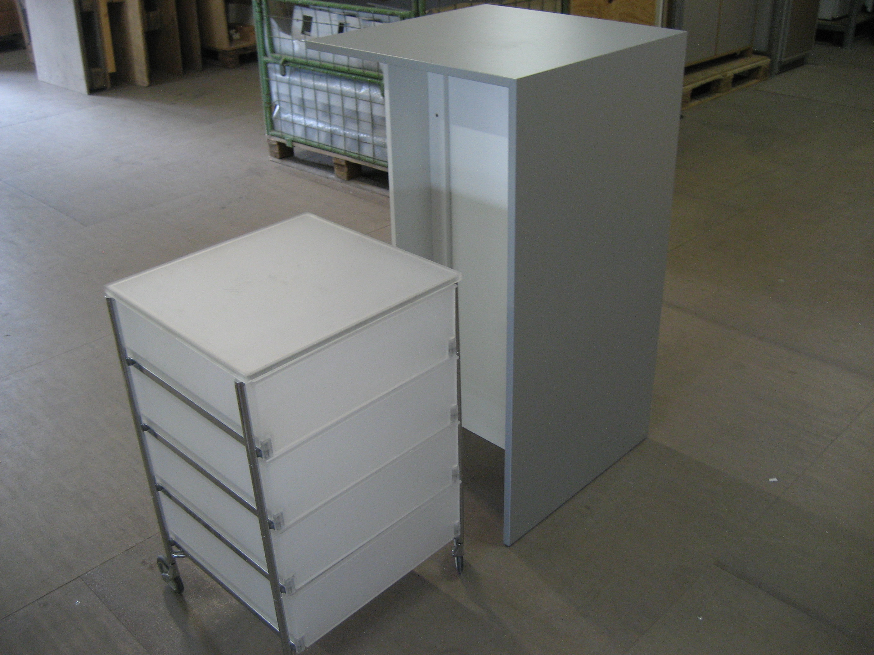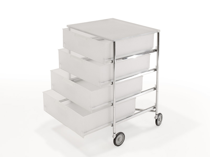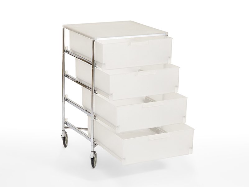 Plexirollwagen mit Schubladen
